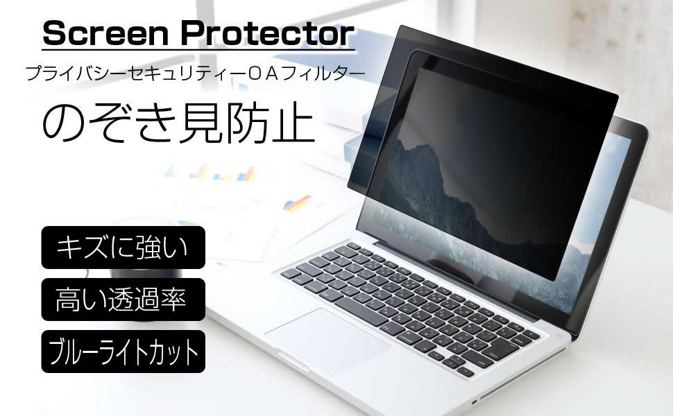 - ・パソコン画面の、左右からの覗き見を防止。プライバシーを守ります。